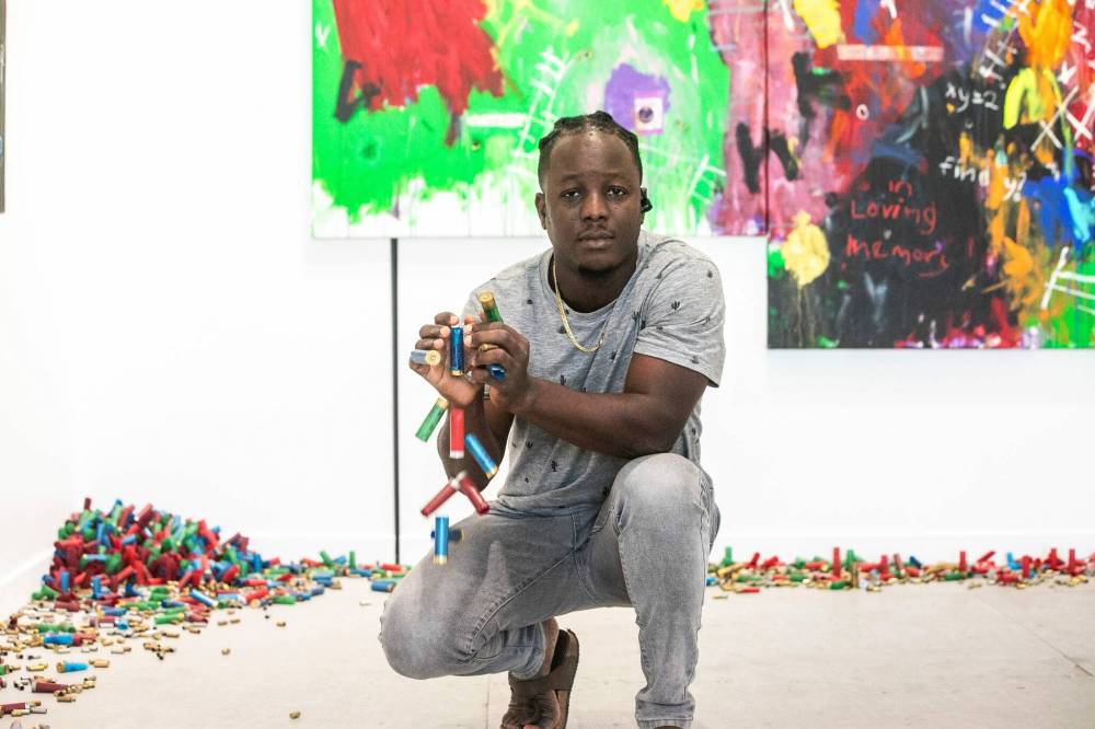 The powerful large-scale mixed-media works that comprise his first solo exhibition in Canada, Theatre of War — on view at 226 Main Street Gallery until Aug. 30 — force the viewer to look head-on at an epidemic from which the rest of the world has mostly turned away.