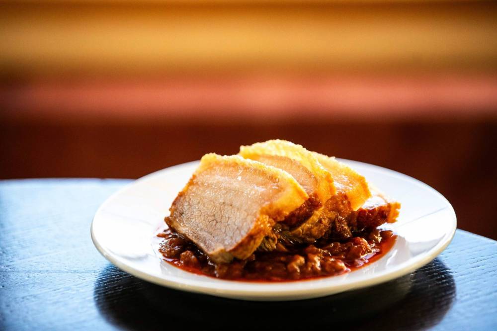 MIKAELA MACKENZIE / FREE PRESS Snack Häus’s Manitoba pork belly has been salt-aged for five days prior to roasting.