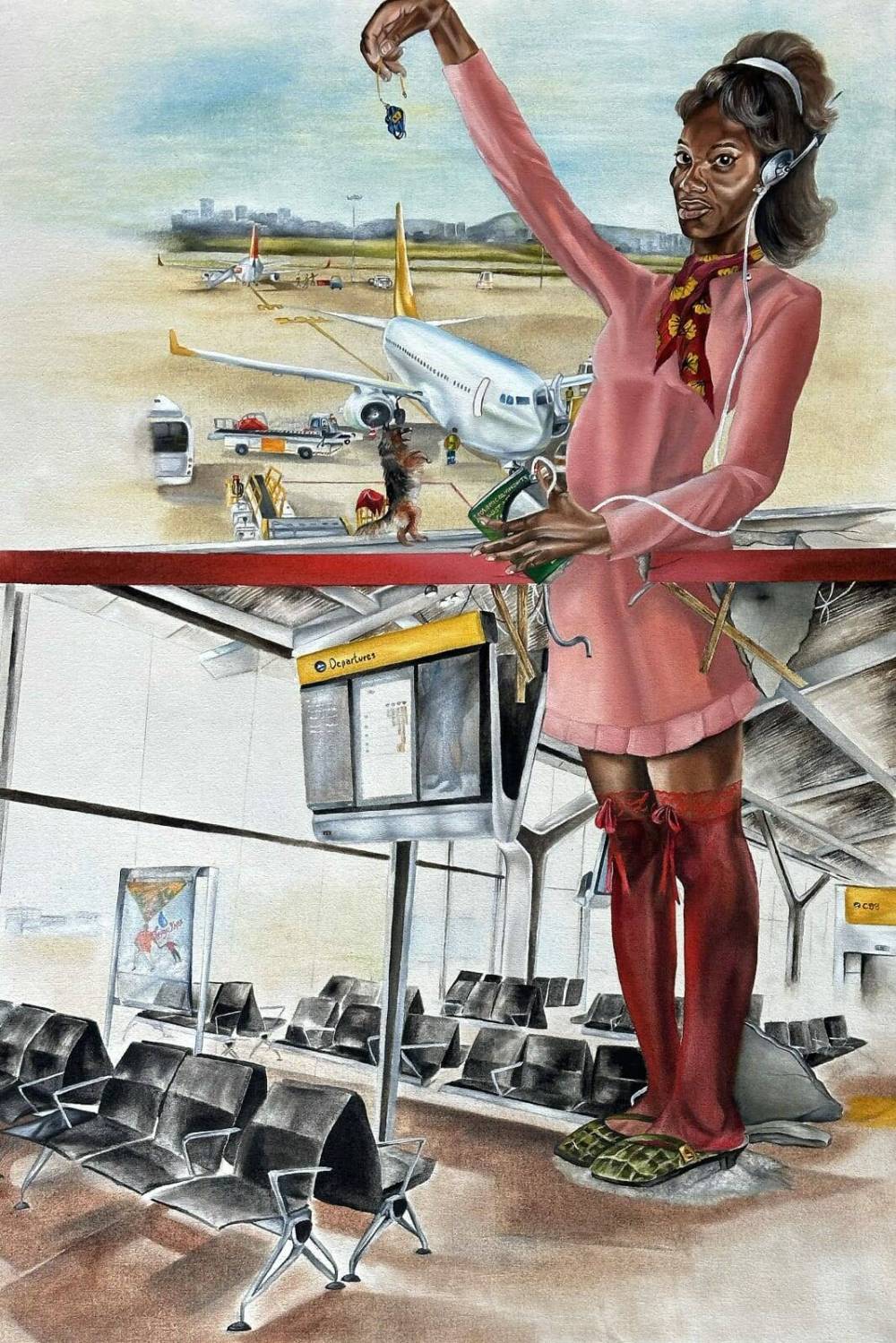 At the time Maduka was exhibiting work from her airport-themed series, Lessons on Flying, about a woman who steals a hostess uniform in an attempt to stow away. A connection was made.