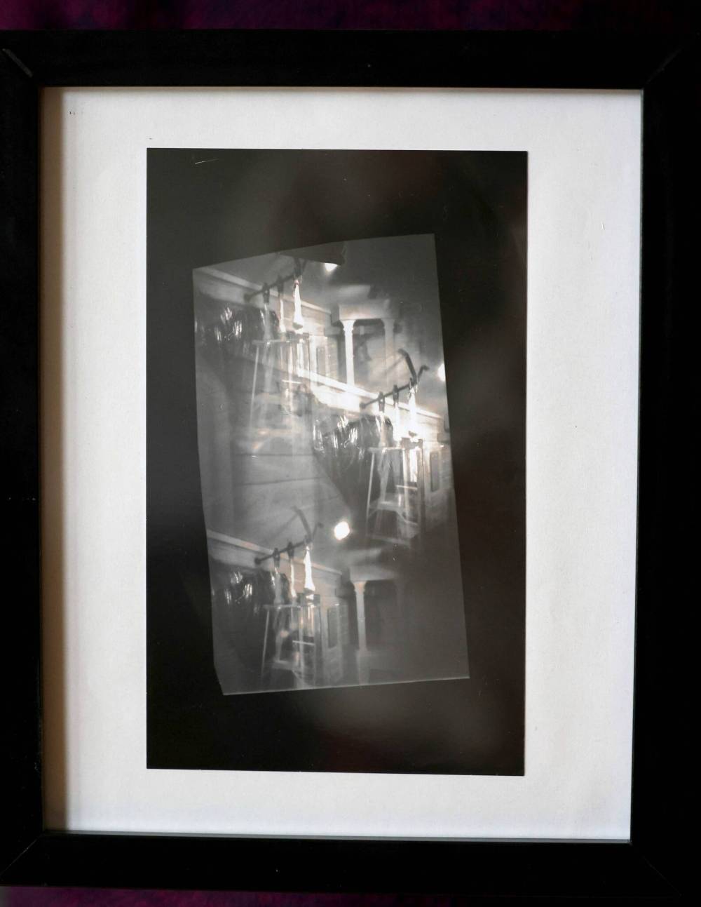 She cast these clappers — first she covered each of them to protect them and then used plaster to make a mould and then she cast them in plaster. She then set up a pinhole camera to take a picture of the process. It’s a record of her casting these clappers.