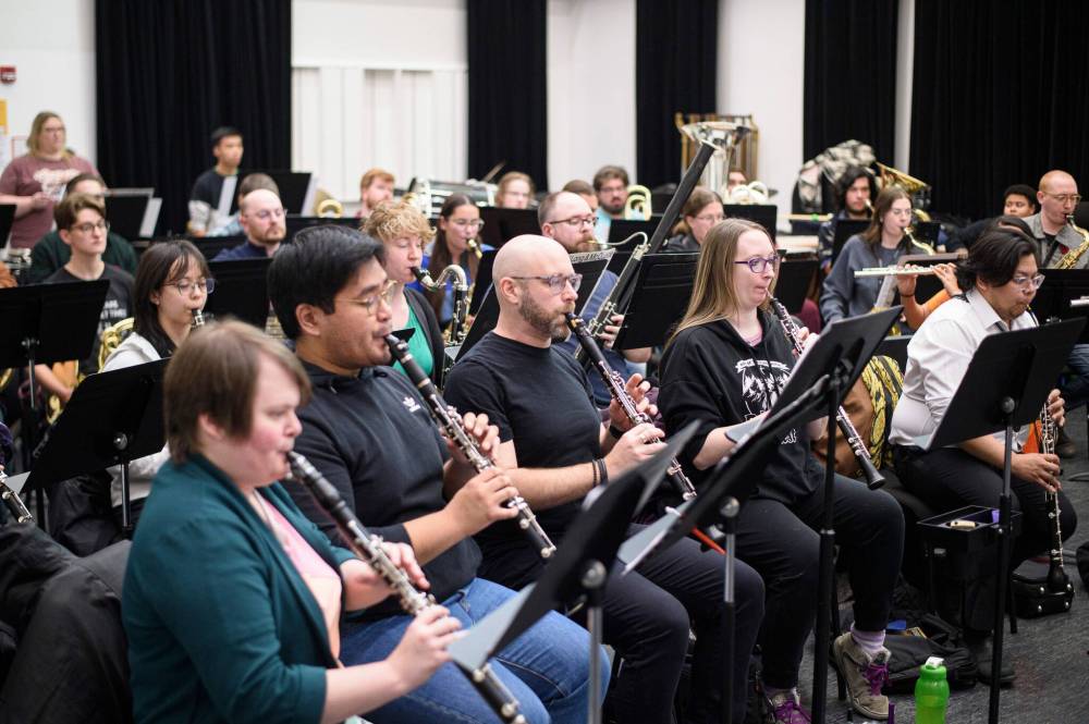 “Here, there’s a lot more professionals and people who’ve gone through music school, and so the quality of the music is a lot higher and the music is a lot more challenging. I get to play with my type of people, my type of music and more challenging music, which is awesome,” says Aubin, a French horn player, faculty of music alum and Zelda enthusiast.