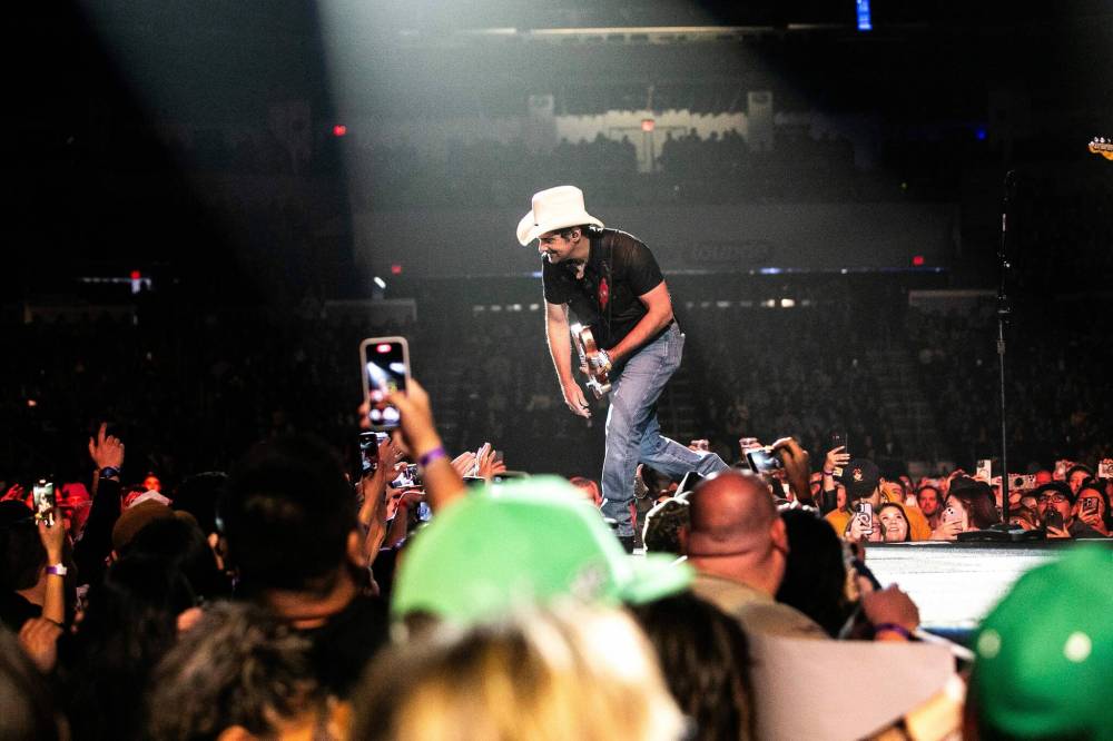 Following a slightly late start, Paisley, 53, strode onto the stage with his signature white cowboy hat and blue Telecaster, launching into the tour’s namesake single while vintage Chevrolet trucks flashed across a large screen.