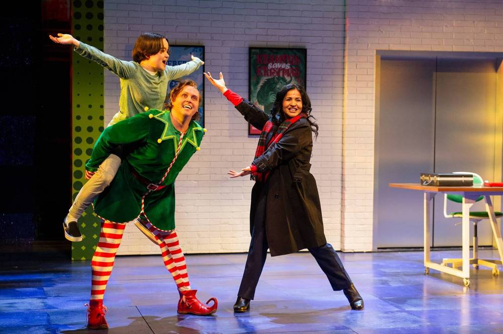 Elf: The Musical adds its own twists to the original screenplay, with its story-within-a-story now told from the perspective of a crotchety, TV channel-surfing Santa Claus (Daniel Bogart in his RMTC debut; also playing Grinchy publisher Mr. Greenway as an intriguing flipside) in lieu of the film’s original Papa Elf.