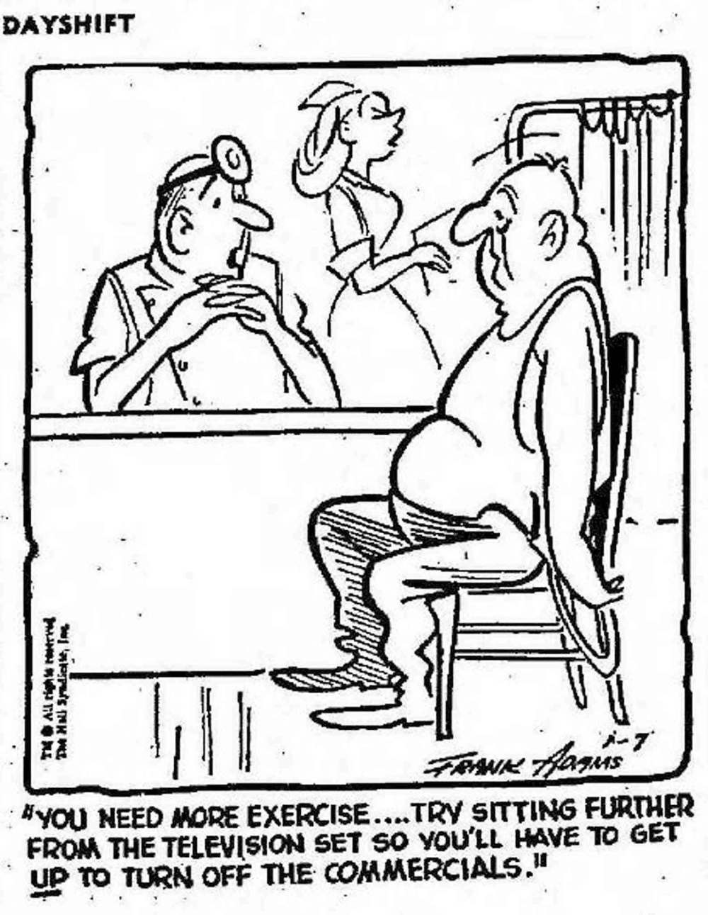 "You need more exercise... try sitting further from the television set so you'll have to get up to turn off the commercials."
