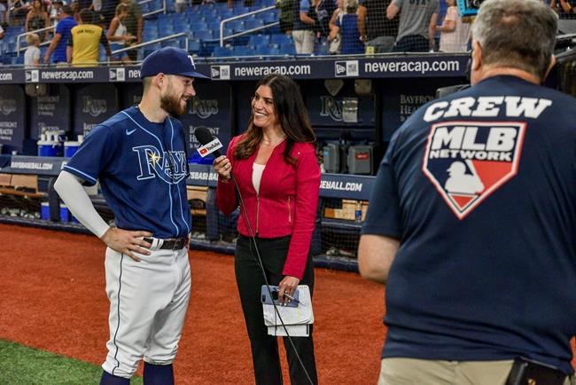 ST. PETERSBURG, Fla. (AP) — There was history — and her story, too — in the broadcast booth at Tropicana Field on Tuesday night.