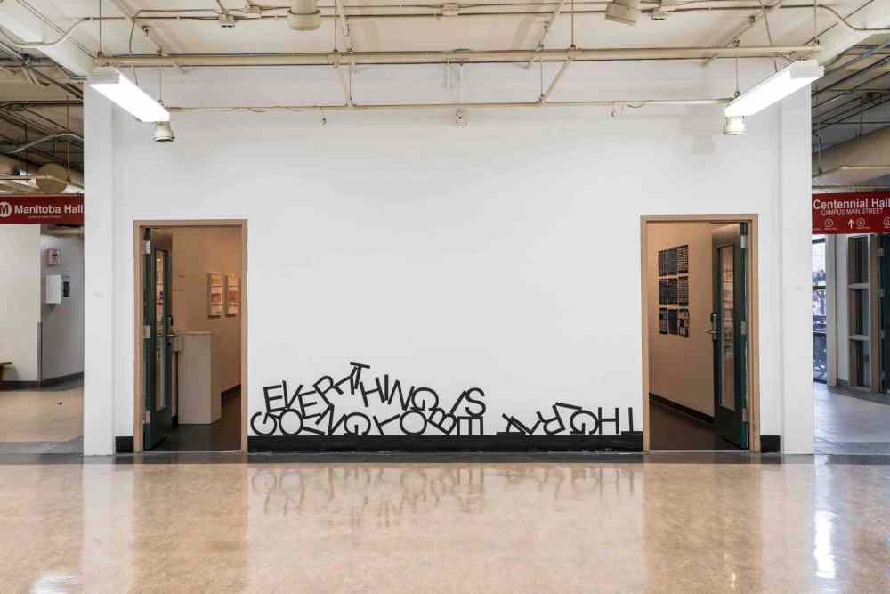 And what would an anniversary be without a few words of encouragement? Just outside the gallery, U.K. artist Ben Cove’s Untitled (Wall Painting) cheekily speaks to the managed chaos and skin-of-the-teeth tenacity required to keep a poetry journal running for 40 years: a jumbled heap of letters spells out “Everything is going to be alright.” Here’s hoping, and here’s to 40 more.