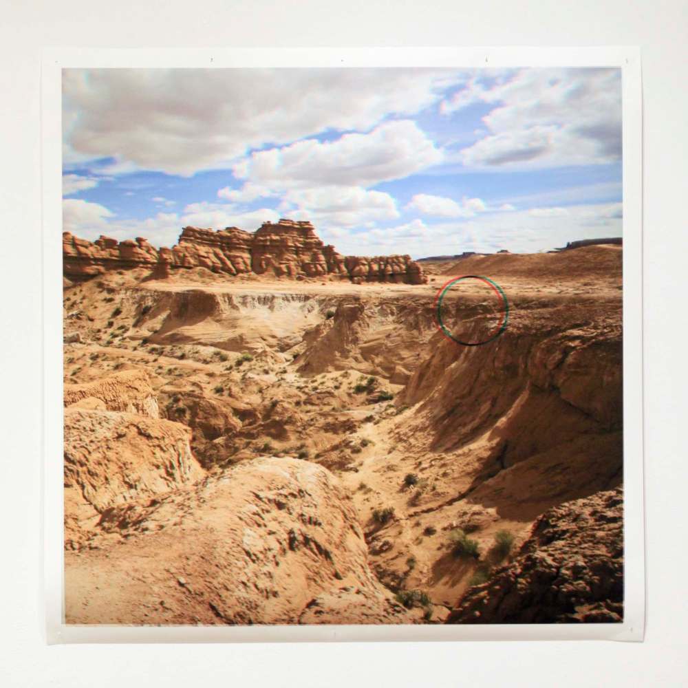 My face pressed against a wall-mounted peephole in a back corner of the gallery, I struggle to make out the image on a recessed LCD screen. Focusing eventually on a sun-dappled forest, it takes another second to notice the man standing off to the right, just within my peripheral vision. It takes another second to notice his head is twice the size it should be, a buzzy, pixelated blur that might or might not be mouthing words.