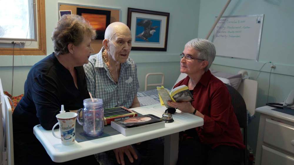 She has no shortage of material. Several of Sturk’s subjects deserve a documentary of their own. These include Carol Peloquin, who works to help reintegrate ex-cons into society outside of prison, and Jo-Ann Duggan, of the Sisters of the Grey Nuns, who works at Jocelyn House Hospice providing care to the dying. Another section of the film witnesses a reconciliation event in which Sister Olive Halpin engages in a healing effort with the adult students of a residential school.