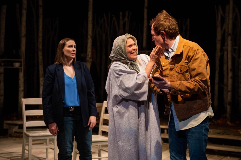 The spirit of Baba Yaga is that she is a shapeshifter, and the same can be said of Stephenson Kerr, who with a subtle gnarl of her wrist provokes distrust, and with a simple turn of her heel conveys authority and sexual dominance. As Yaga, through a thick Ukrainian accent that passed the MTC audience’s muster, Stephenson Kerr serves as a pseudo-narrator.