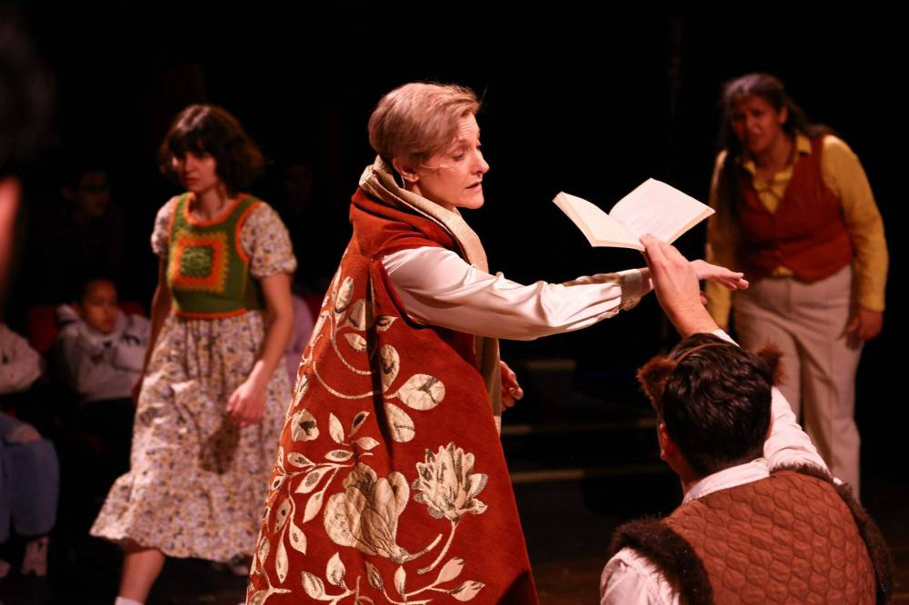 Meanwhile, some inspired propwork is at play. In one instance, upturned books become the flapping wings of an army of birds. And although Forster does the voice for Reepicheep, who could definitely use more stage time, the mouse is actually a knee-high wooden creature on wheels who Forster pushes around like a vacuum cleaner.