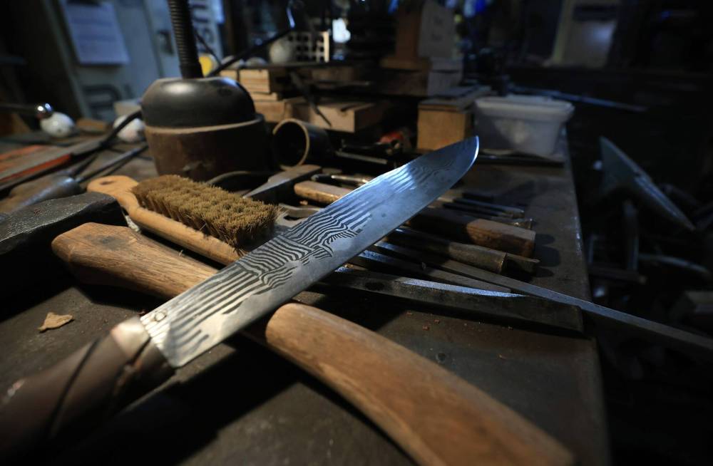 Sharp-edged artistry Bladesmith hones his creativity with intricately crafted knives