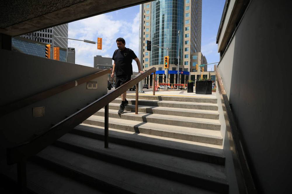 The pair of new Winnipeggers were experiencing a rite of circuitous passage that will soon be eliminated for all downtown pedestrians.