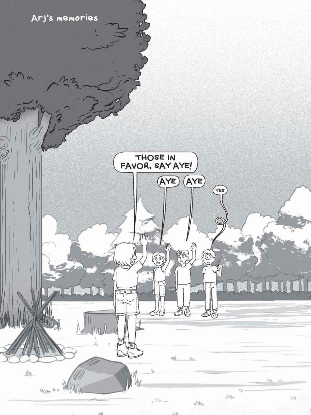 Amongst these more serious stories, Dhaliwal also finds room for plenty more jokes, as Gian and Grae, a Cyclops artist duo, skewer the art world and its inhabitants in ways reminiscent of Walter Scott’s Wendy series. An acclaimed Cyclops children’s book written by a Two Eyes creator also points out the inherent problems with appropriating others’ stories, although the message becomes muddled after Bron writes his own book with a laughably similar plot.