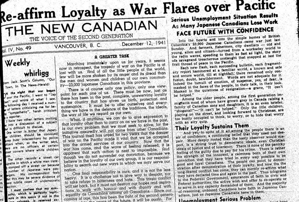 After Japan’s attack on Pearl Harbour on Dec. 7, 1941, the newspaper published a front-page editorial affirming the Nisei community’s “complete unswerving loyalty to Canada.”