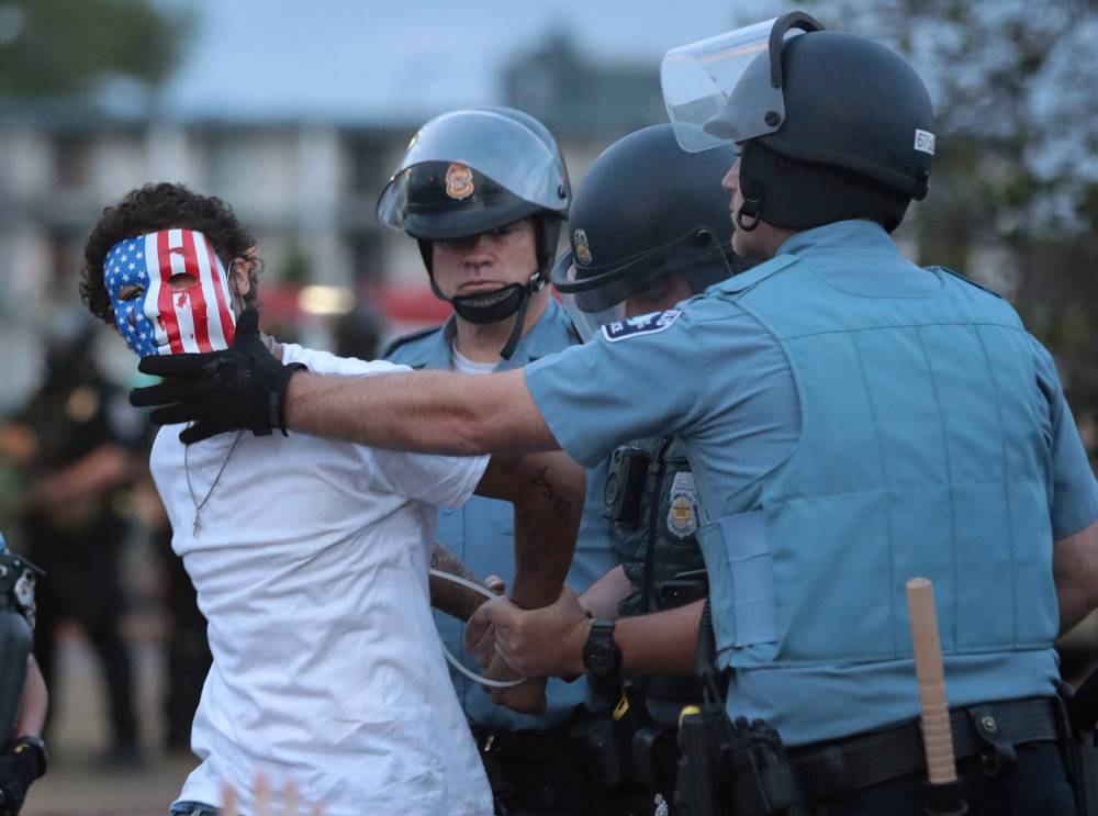 Protesters and police face off during a rally in May 2020, after George Floyd’s death at the hands of law enforcement in Minneapolis.