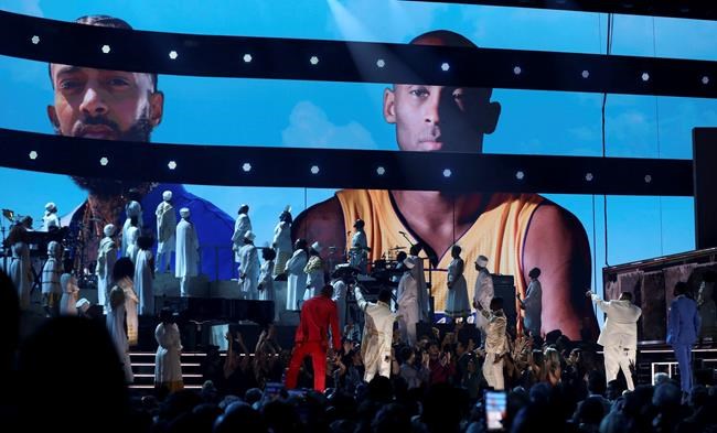 DJ Khaled said the news about Bryant’s death was “devastating.” He took part in a tribute to the late Nipsey Hussle that also included John Legend, Meek Mill, Kirk Franklin, Roddy Ricch and YG. They performed “Letter to Nipsey” and “Higher.”