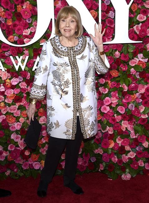FILE - In this Sunday, June 10, 2018 file photo, Britain's Diana Rigg arrives at the 72nd annual Tony Awards at Radio City Music Hall in New York. Actress Diana Rigg, who became a 1960s style icon as secret agent Emma Peel in TV series “The Avengers,” has died at age 82. Rigg’s agent Simon Beresford says she died Thursday Sept. 10, 2020 at home with her family. (Photo by Evan Agostini/Invision/AP, File)