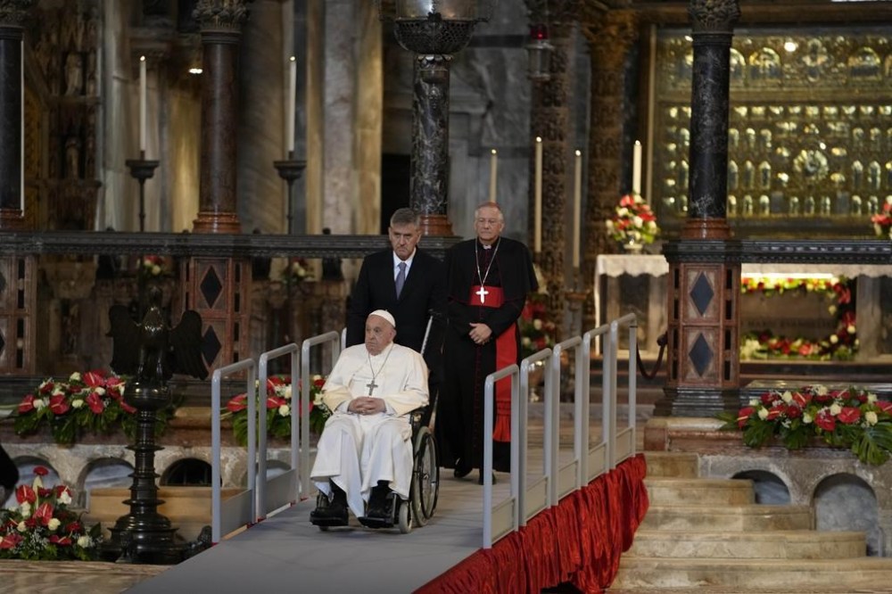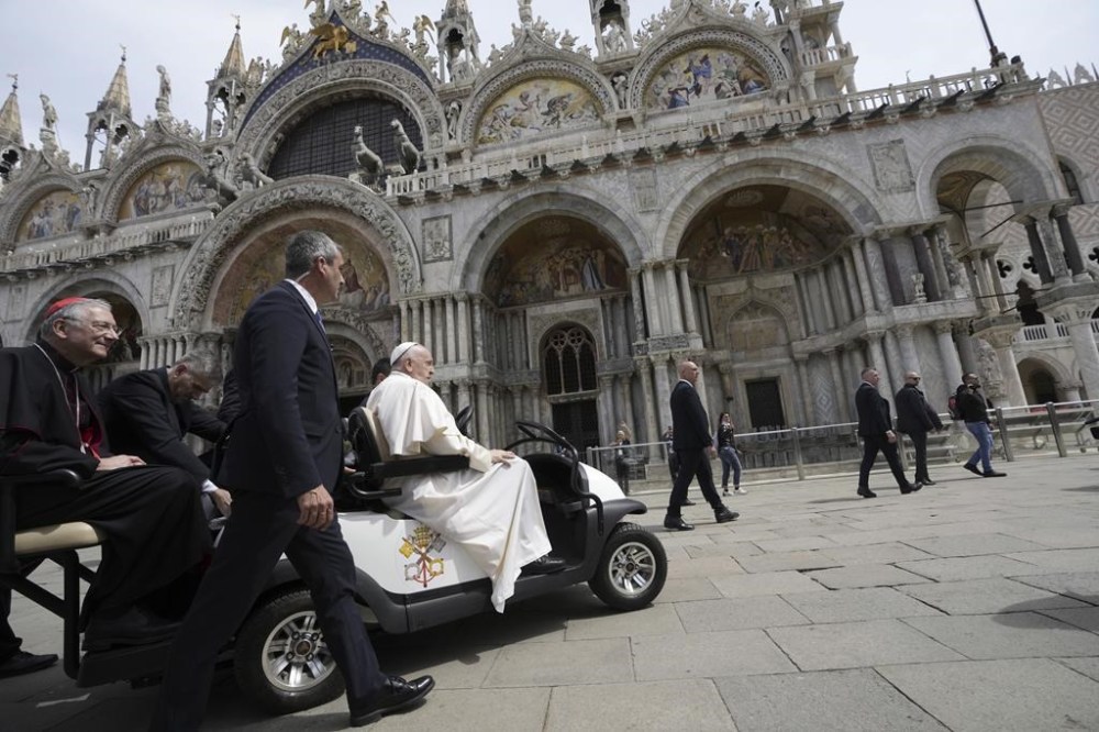 Francis’ dizzying morning visit, which ended with Mass in St. Mark’s Square, represented an increasingly rare outing for the 87-year-old pontiff, who has been hobbled by health and mobility problems that have ruled out any foreign trips so far this year.