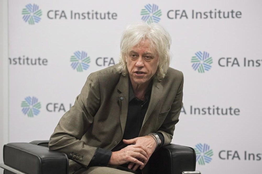 Bob Geldof speaks to reporters at the CFA Institute annual conference in Montreal, Wednesday, May 11, 2016. THE CANADIAN PRESS/Graham Hughes