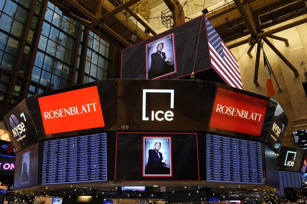 As Trump marked the ceremonial start of the day’s trading, the magazine cover featuring him was projected onto a wall at the NYSE. He was flanked by family and members of his incoming administration while his favored walk-on song, “God Bless the U.S.A.,” played. Afterward, he returned to his home in Florida.