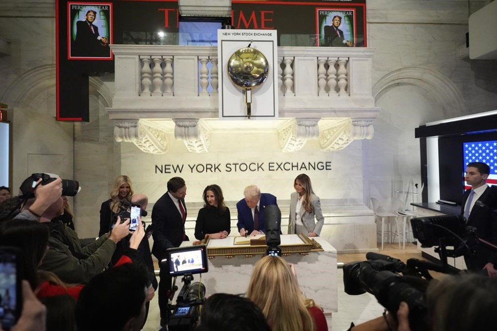 Trump, accompanied by his wife, Melania Trump, daughters Ivanka and Tiffany and Vice President-elect JD Vance, grinned as people chanted “USA” before he opened the trading day. He then raised his fist.