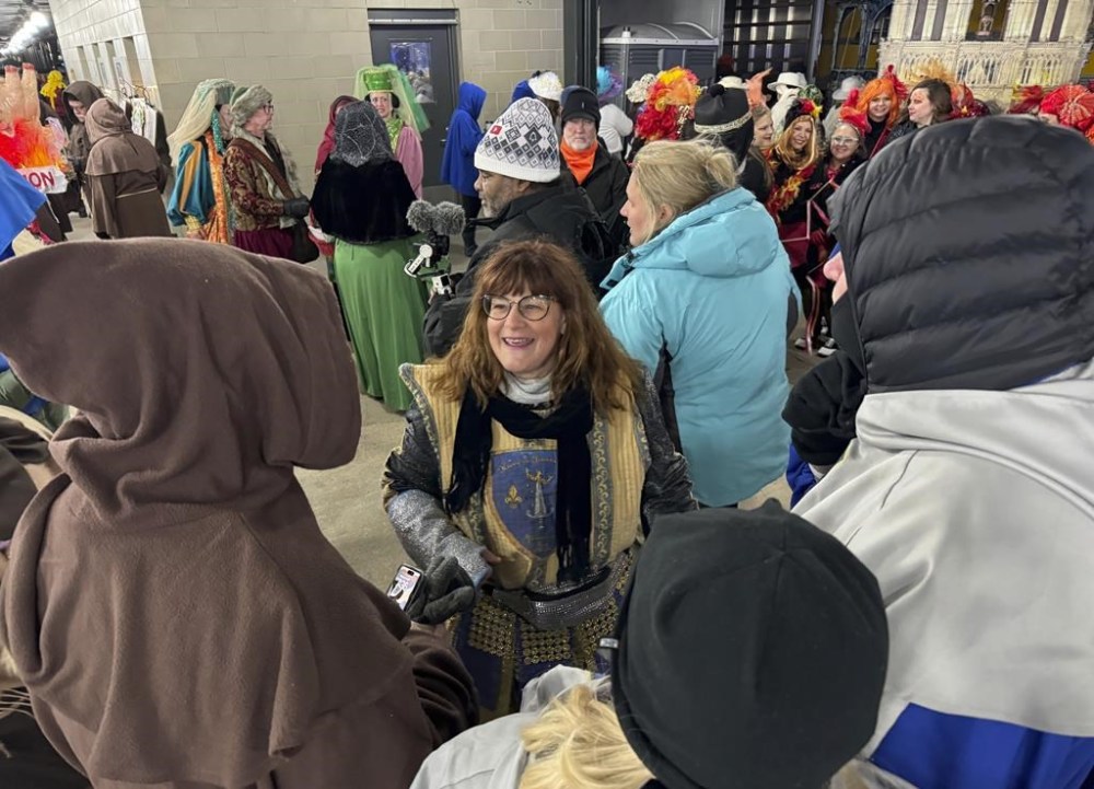 Spectators expressed gratitude for the knights, monks, angels and others who had donned their elaborate costumes in near-freezing weather: “Thank y’all!” “Y’all look so great!” “Gorgeous!” Strangers smiled at each other, friends reconnected and hugged along the route and the warmth of the moment seemed to hold the city together.