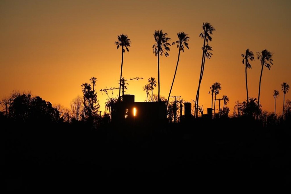 The Sun rises over homes destroyed by the Palisades Fire in the Pacific Palisades neighborhood of Los Angeles, Thursday, Jan. 16, 2025. (AP Photo/Damian Dovarganes)