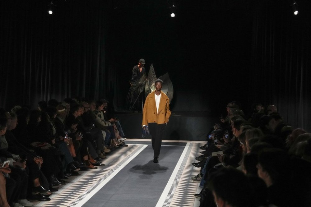 A model wears a creation for the men's Lanvin Fall-Winter 2025-2026 collection, that was presented in Paris, Sunday, Jan. 26, 2025. (AP Photo/Michel Euler)