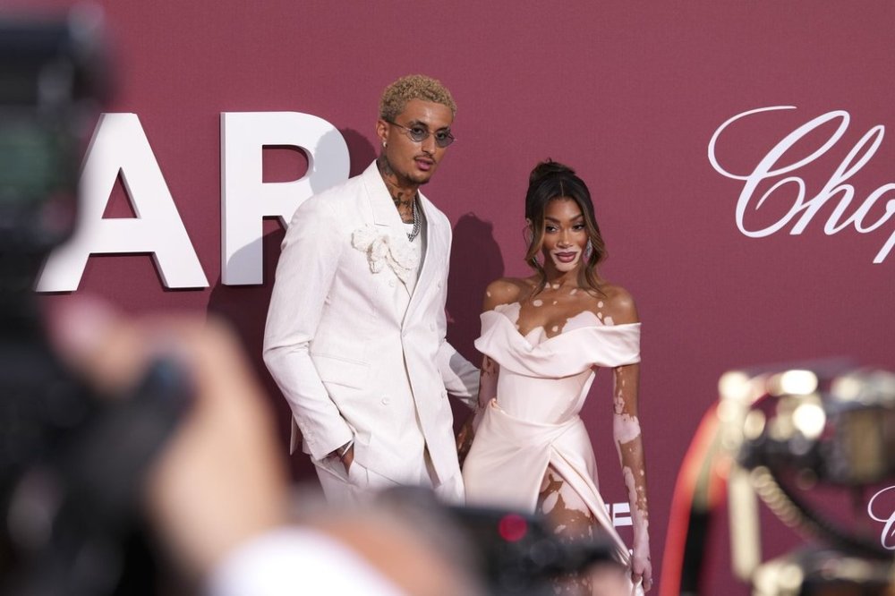 FILE - Kyle Kuzma, left and Winnie Harlow pose for photographers upon arrival at the amfAR Cinema Against AIDS benefit at the Hotel du Cap-Eden-Roc, during the 77th Cannes international film festival, Cap d'Antibes, southern France, May 23, 2024. (Photo by Scott A Garfitt/Invision/AP, File)