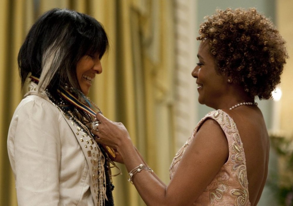 Sainte-Marie rose to fame as a folk performer in Toronto’s Yorkville music scene, later winning an Oscar as one of the songwriters on “Up Where We Belong,” the ballad from the 1982 film “An Officer and a Gentleman.”