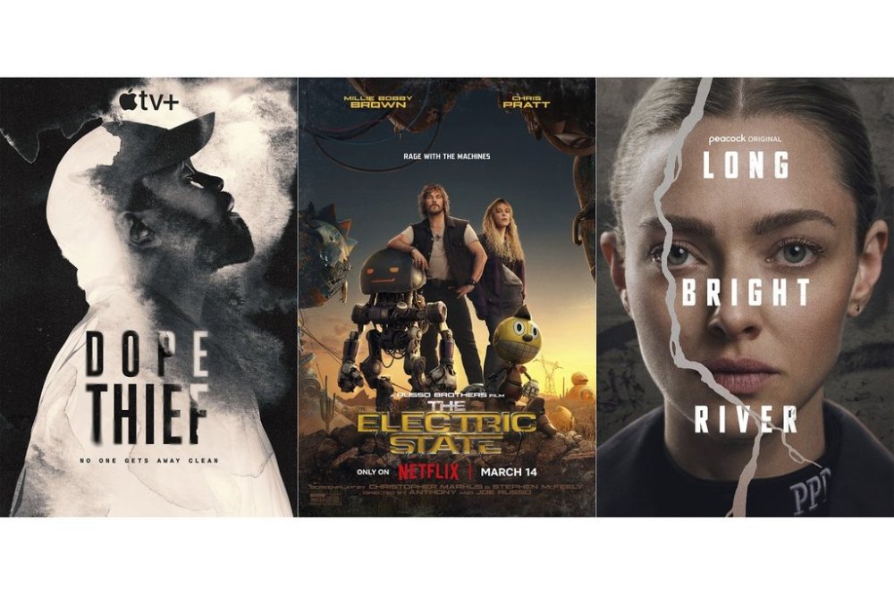 — Directors Anthony and Joe Russo (“Avengers: Endgame”) are back on Netflix with their adaptation of Simon Stalenhag’s 2018 illustrated novel “The Electric State.” The Russos, who last released 2022’s “The Gray Man” on the streaming service, bring their big-budget flare to a retro-futuristic tale populated by cartoon-like robots. Millie Bobby Brown stars as a teenager in search of her long-lost brother, who travels the American southwest with Keats (Chris Pratt) and his robot sidekick, Herman (voiced by Anthony Mackie). (Read AP’s review.)
