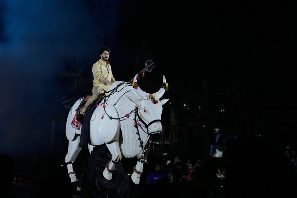 “Varanasi” is Babu’s first collaboration with Rajamouli. The first look shows him as a fierce warrior covered in blood and riding a white bull with a trident in hand. Babu indeed made his entry onstage Saturday atop a mechanical white bull.