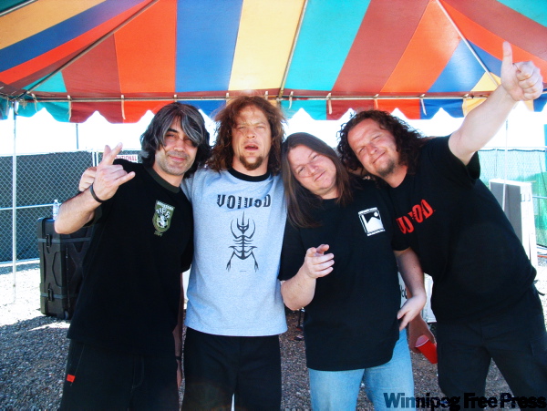 The studio band isn’t the same as the live one, Langevin explains. Newsted couldn’t play the current dates so Voivod recruited original bassist Jean-Yves (Blacky) Theriault to fill in. Martyr guitarist Dan Mongrain is handling guitar duties.