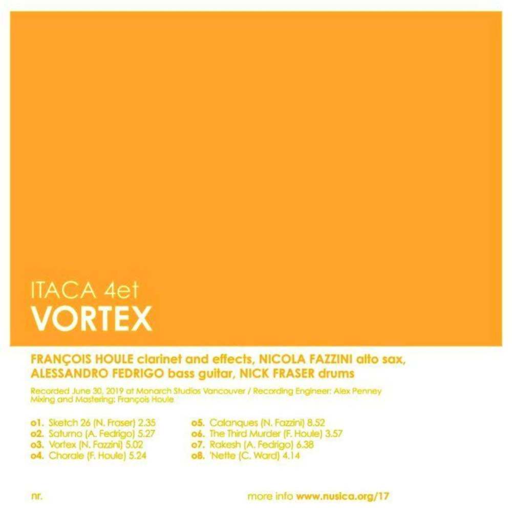 The Itaca Quartet is an international collaborative band that started life in 2016 and has toured both in Canada and Europe. The name “Itaca” is derived from the first three letters of Italy and first two of Canada, as two of the members are Italian (alto player Nicola Fazzini and bass guitarist Alessandro Fedrigo) and two are Canadian (clarinetist François Houle and drummer Nick Fraser). This album, recorded in Vancouver last year, clearly shows that these four musicians were not thrown together at the last minute. They are close-knit and very sensitive to each other. Listeners from this country may be more aware of the Canadian pair, whose musicianship is absolutely first-rate, but the Italians are every bit as accomplished.