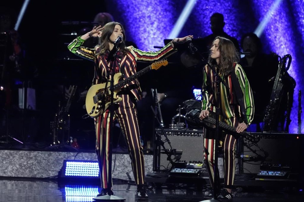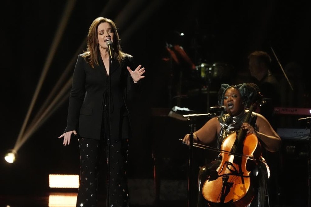 A long and touching In Memoriam segment celebrated many of the musical greats lost last year. Stevie Wonder performed “For Once in My Life” and “The Best Is Yet To Come” in honor of Tony Bennett; Annie Lennox delivered “Nothing Compares 2 U” for Sinéad O’Connor. “Artists for ceasefire, peace in the world,” Lennox said at the end of the song, her fist extended in the air.