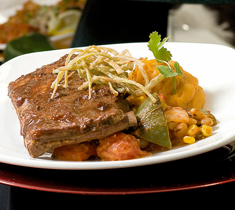 6. Place the rest of the ingredients, including the ribs, into a preheated oven at 150C (300F). Cook for 11/2 hours.