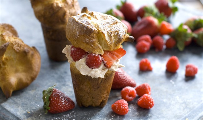 Recipe for cardamom popovers with cinnamon mascarpone and berries
