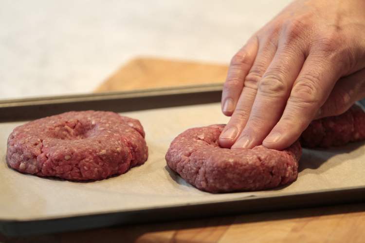 When mixing and shaping beef patties, do not overdo it. If you press and pack the meat together, the cooked patty will be firm and tough in texture.