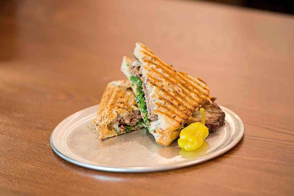 There are grab-and-go bagels and rotating soup and salad options. Lunch standouts include the hot-pressed, house-smoked brisket sandwich, which is just sublime simplicity, the meat chewy at the edges but very moist, with a kiss of jalapeño heat and some greens a little wilted from the warmth. The accompanying small green salad was light and bright with an unusual and very appealing red pepper vinaigrette.