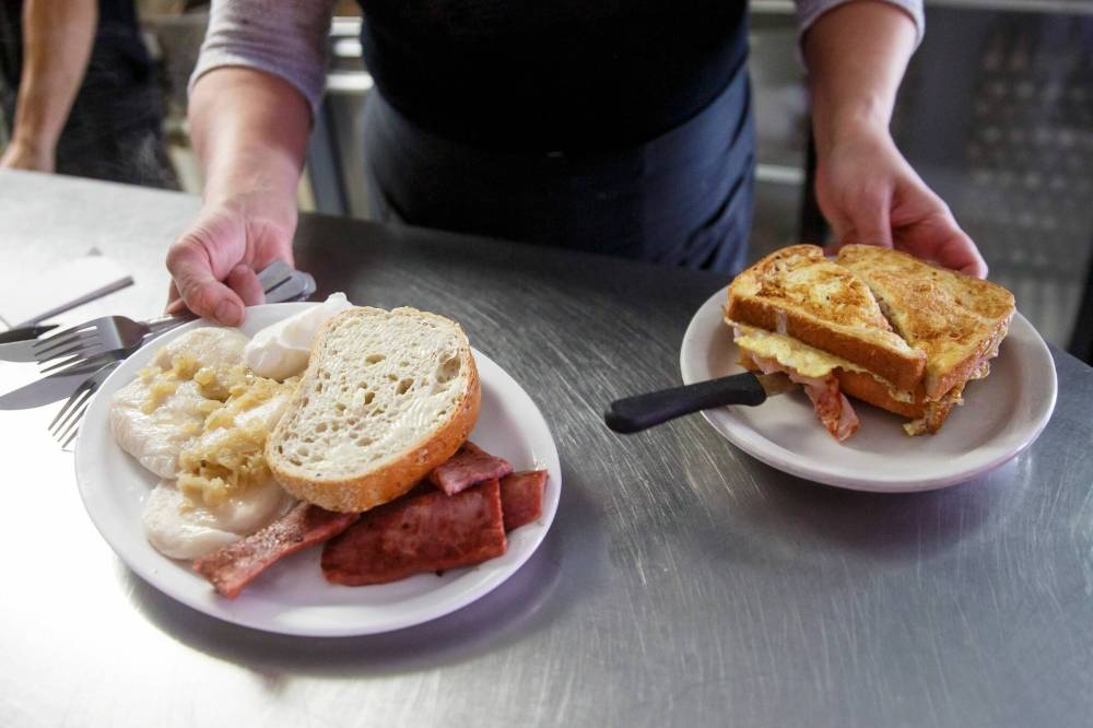 Wayne and Lori Smith did. They sat in the back corner, underneath a portrait of Patsy Cline, ordering sausage and eggs and bologna and eggs, with rye toast. “They greet you by name here,” said Lori. “It’s like eating at mom’s,” said Wayne, who picked up a container of borscht for his mother on Monday, the day before her 94th birthday.
