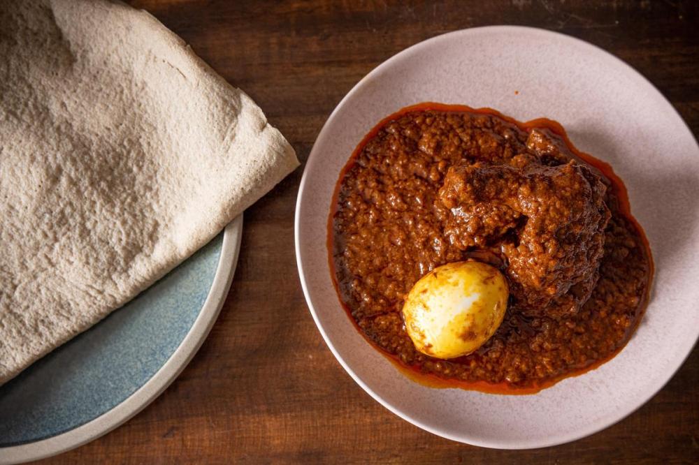 The menu is limited, the most popular item is doro wat — bone-in chicken cooked with vegetables and a generous amount of berbere until the meat is tender and the sauce clings to the protein.