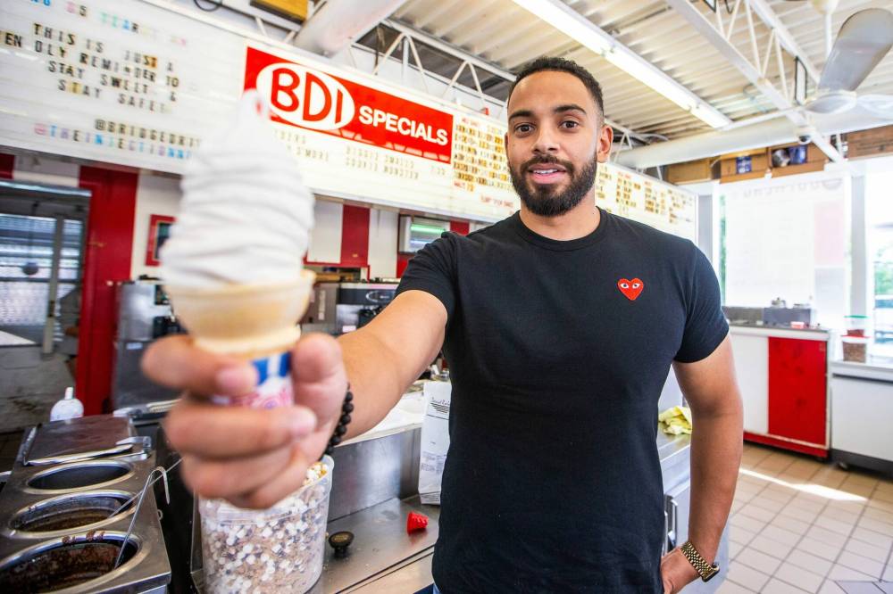 BDI owner Justin Jacob serves up a cone of lupin-bean frozen dessert at the Jubilee location. The new location could see BDI offering a hard ice cream version of the lupin treat.