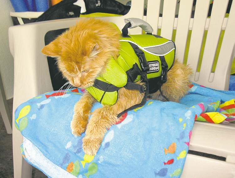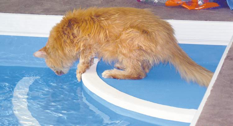 Freddy is a local 18-year-old feline that recently learned to take part in an activity traditionally attributed only to dogs — swimming in a pool.