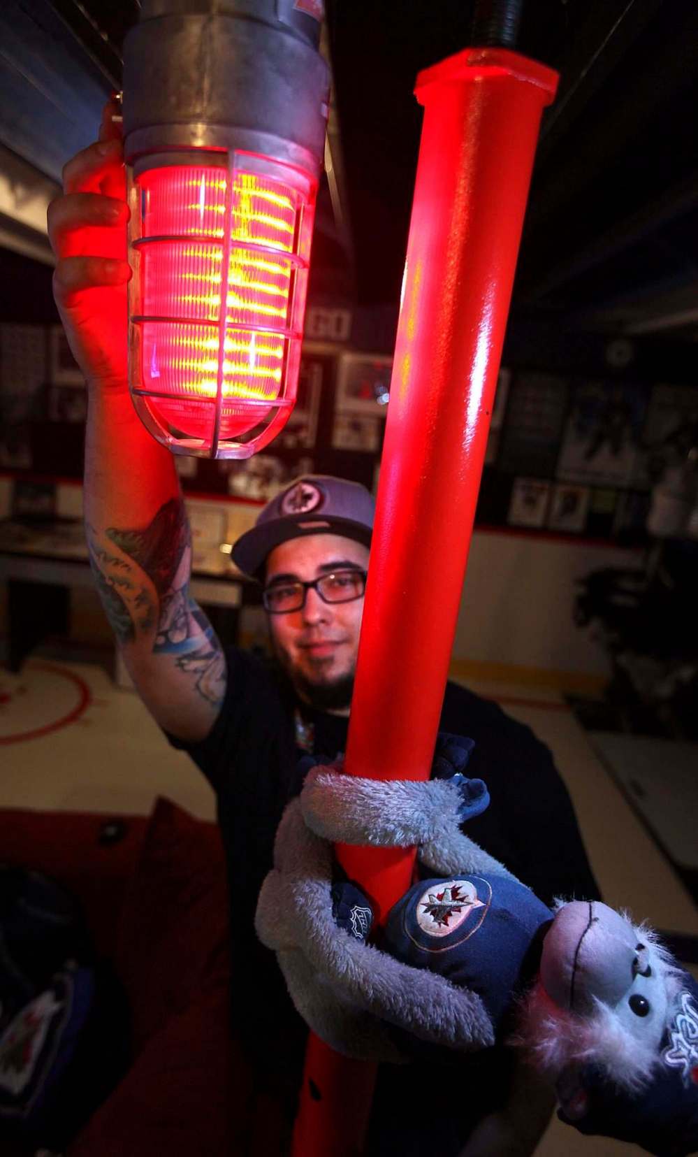“What I’d eventually love to do is replace our loveseat with a pair of those red, pull-down seats from the old Winnipeg Arena,” he says, muting the volume on his 60-inch flatscreen TV, which — surprise, surprise — is broadcasting NHL highlights from the previous evening. “I saw two (seats) for sale on Kijiji a while ago but the guy was asking something crazy like $300 a piece, so I was like, I guess I’ll keep looking.”