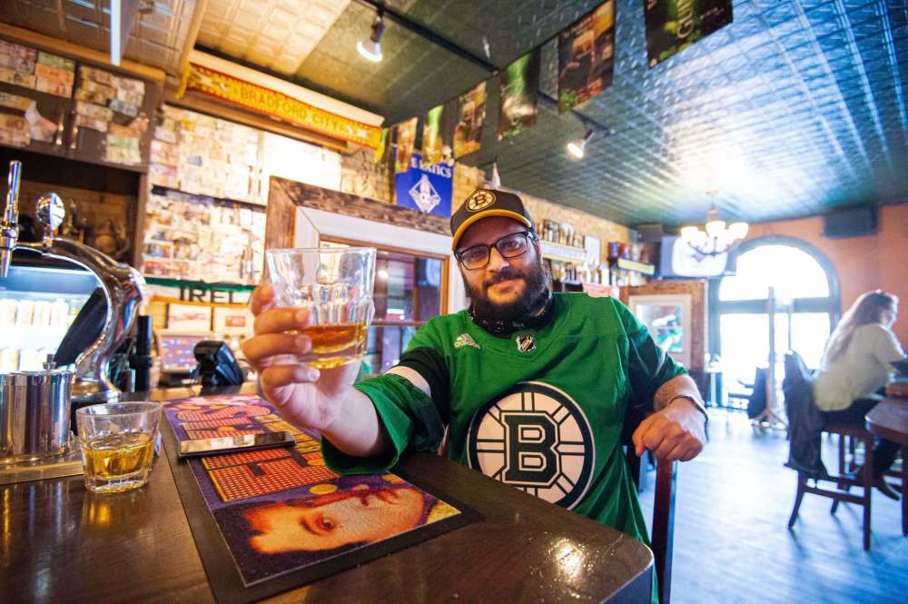 “It feels awesome to be here,” he told the Free Press, and he clearly meant it. Deonaraine’s been a regular at the Exchange District pub for 15 years. A longtime Bruins fan, he’d purchased the jersey — shipped across the border —in anticipation of St. Patrick’s Day last year and was crushed when he wasn’t able to wear it out.