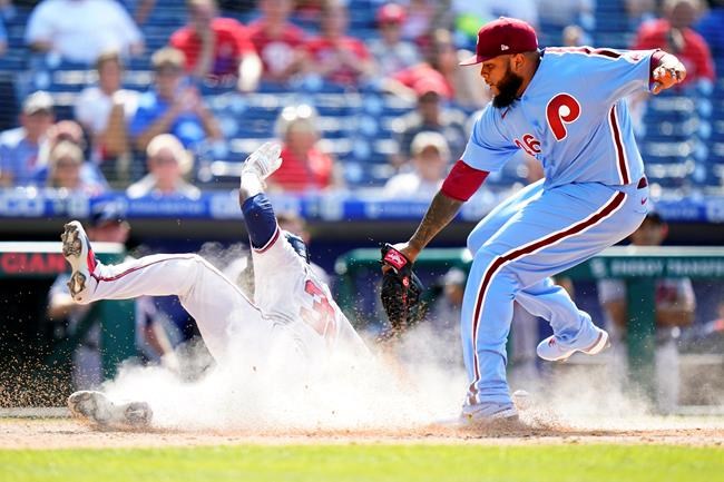The Phillies broke through against A.J. Minter when Herrera lined a double off the right-field fence with one out in the eighth. Herrera flipped his bat and hesitated to watch the ball before running to first and missed an opportunity to reach third when right fielder Ronald Acuña Jr. fumbled the ball.