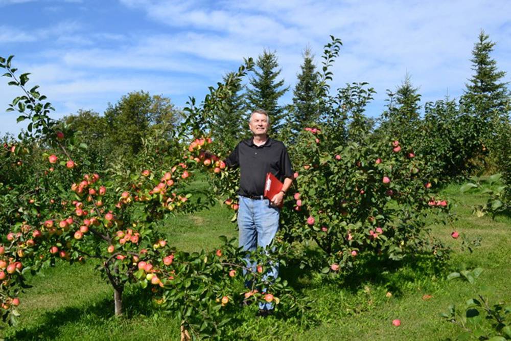 Bernie Nikolai at his test orchard west of Edmonton where he grows 300 fruit trees.