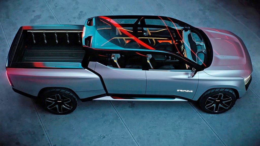 The Ram Revolution concept is a preview of what we might expect to see from the brand’s first electric pickup. Some of the more notable features include third-row jump seats, a retractable steering wheel, a glass roof with the ability to adjust the shade of tint, and an 18-foot pass-through that allows for long items to be placed from the bed all the way to the front trunk.