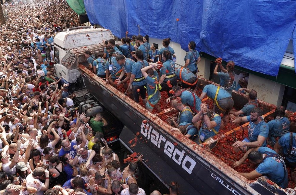 The festival, held on the last Wednesday of August, was inspired by a food fight between local children in 1945 in the town, located in a tomato-producing region.