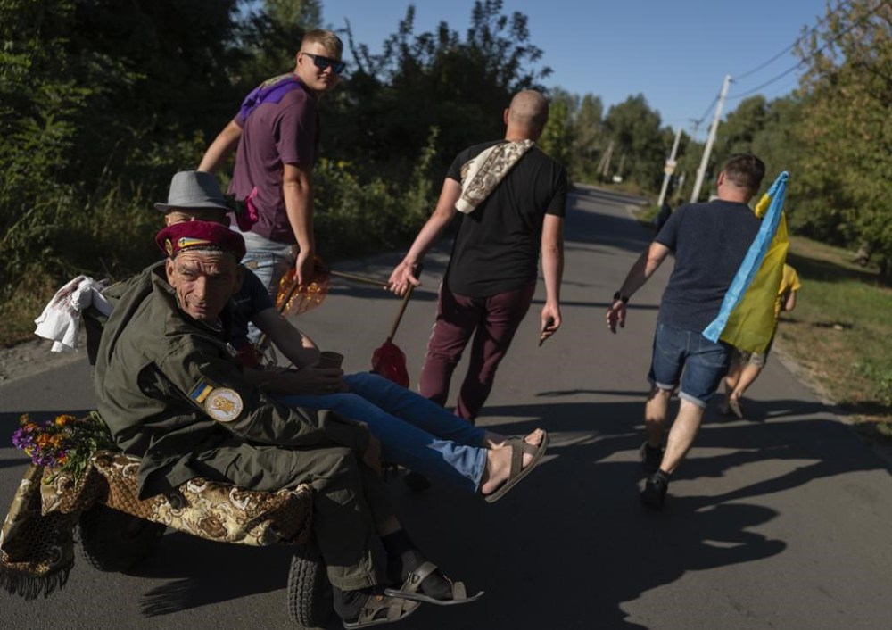 KYIV, Ukraine (AP) — Blinded by a Russian mortar shell, Ukrainian veteran Ivan Soroka couldn’t see his bride when she walked into his family home in a shoulderless white dress, a bouquet of white flowers in her right hand.